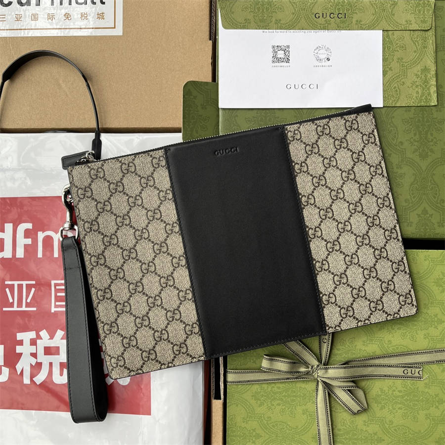 CFK【配置全套包装】 G家GG Supreme高级PVC牛皮手包GG图案已成为品牌标志之一意大利皮革装饰于此款纤薄手包的中央!可拆卸意大利皮制腕带!型号495017,颜色:克皮杏PVC,尺寸:宽30.5×高21×深1.5cm。