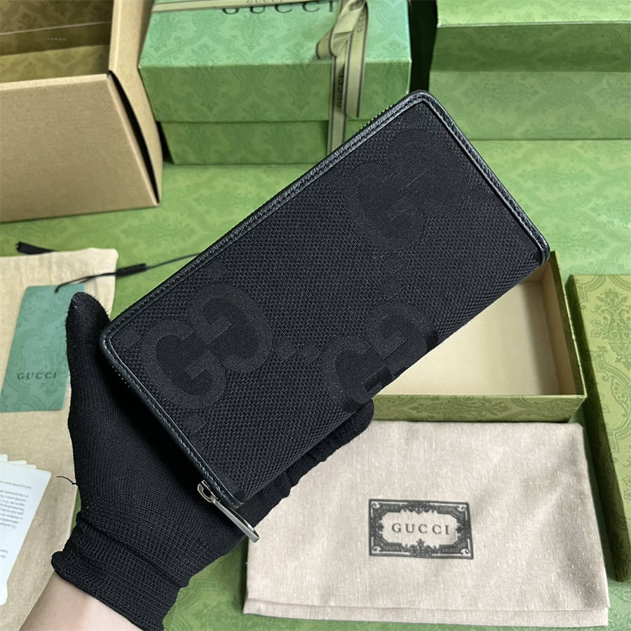 CDK《配全套原厂绿盒包装》超级双G长款钱包。2023春夏系列以超级双G匠心呈现全黑设计经典小皮件。作为对Guccio Gucci先生姓名首字母的焕新演绎,GG标识以超大造型亮眼呈现于这款长款钱包之上,营造别具一格的品牌魅力。黑色超级双G帆布,黑色皮革滚边,云纹织物衬里,内部:12个卡片隔层,3个钞票隔层,1个拉链式零钱袋,全拉链式封口。