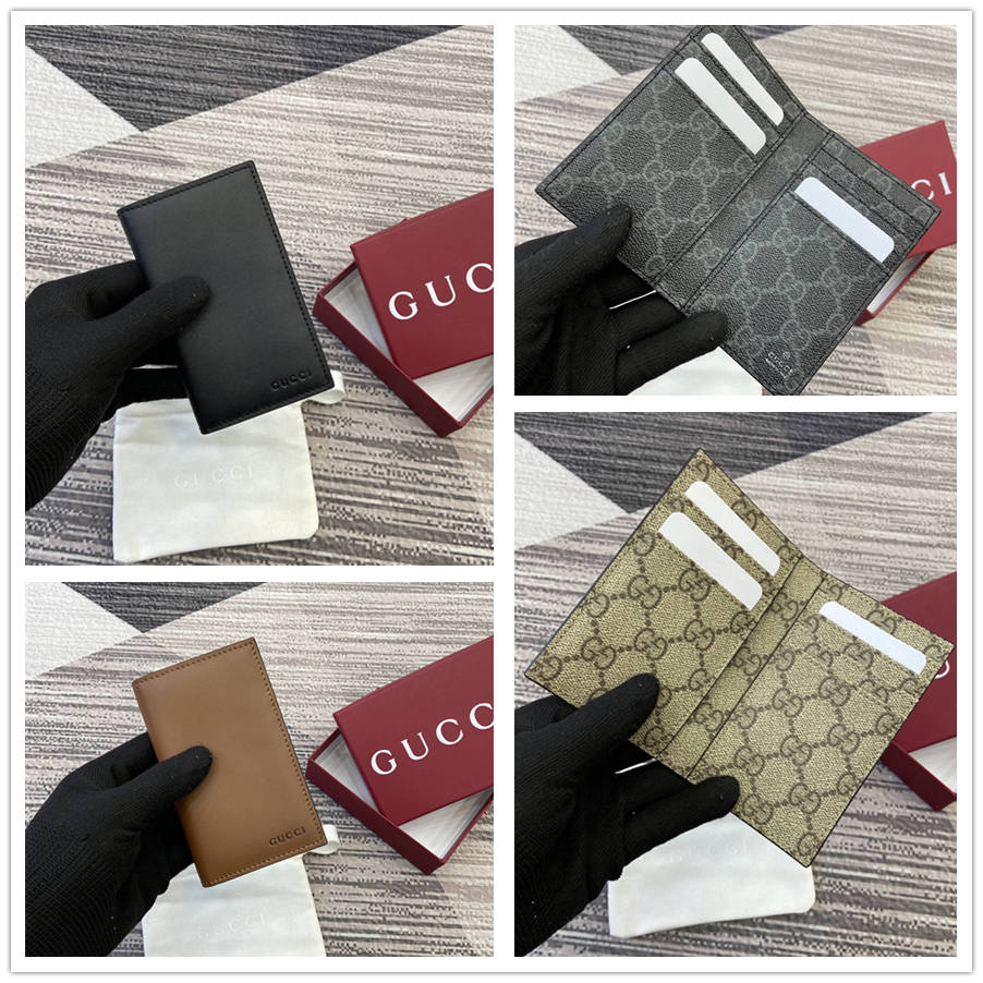 BHK【配全套专柜包装】GG Emblem系列以创意设计和创新功能焕新诠释经典图案,匠心缔造未来数年的珍藏之选。这款双折卡片夹以黑色光面皮革匠心打造,内部巧妙融入全新GG字母交织图案织物,焕新演绎全新配饰系列。正面精心搭配Gucci压花,内设多个隔层。