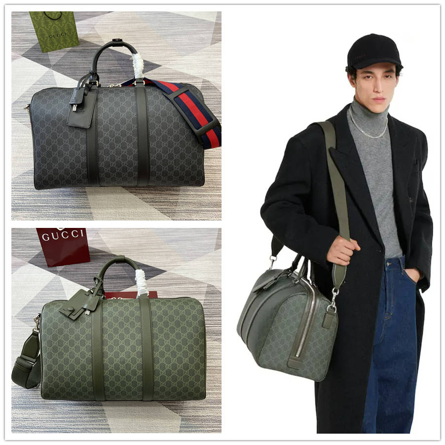 经典GG Supreme帆布以质地柔软且富有延展性而著称,是品牌历经岁月洗礼却从未褪色的经典面料之一。该面料以超细纤维涂层织物打造,以全黑色匠心呈现,赋予这款旅行包以别致魅力。同色调皮革滚边令整个廓形愈发丰满,典藏条纹织带则为整个设计注入一抹亮色。