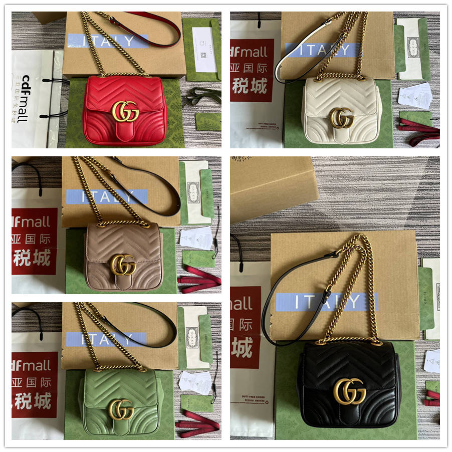 FJK(配全套包装)爆爆爆款全新升级版方胖子。凭借极具辨识度的绗缝面料和双G配件,GG Marmont系列手袋已成为品牌象征。该经典系列每一季都会推出全新廓形,与Gucci当前的美学理念相呼应。这款肩背包以黑色皮革匠心打造,巧妙融入古金色调细节。