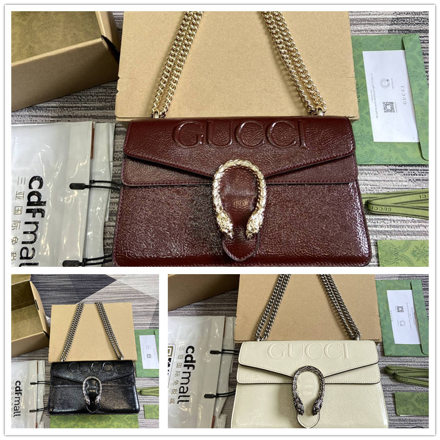 Gucci创作总监Sabato de Sarno选用柔和的解构式设计焕新诠释经典Dionysus系列肩背包。这款单品采用时尚酒红色漆皮制作,经典双虎头锁扣搭配翻盖设计,滑动链条可调整为肩带或顶部提手,打造百变造型,一展现代风范。