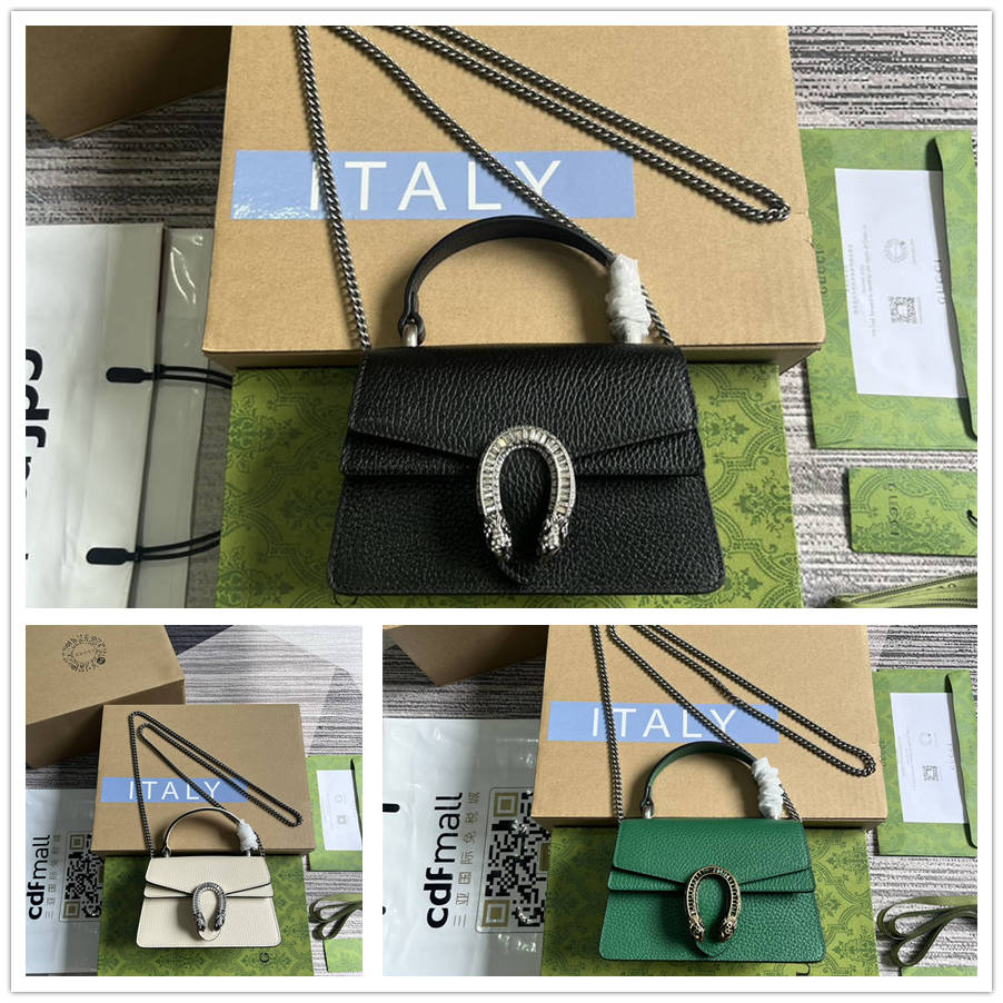 GKK(配全套包装) 2023早秋系列中的这款Dionysus系列手袋以迷你造型演绎,黑色皮革匠心打造,巧妙融入品牌钟爱的立体虎头锁扣。经典配件焕新融入水晶元素,为整个设计注入别样奢华格调,尽展不同纹理间的对比反差美。
