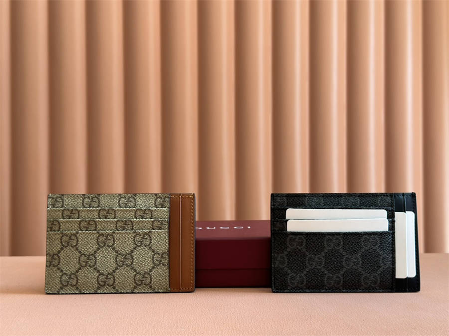 BFK【配置专柜全套包装】GG Emblem系列以创意设计和创新功能焕新诠释经典图案,匠心缔造未来数年的珍藏之选。这款卡片夹以米色和深棕色全新GG字母交织图案织物匠心打造,焕新演绎全新配饰系列。设有十个卡片隔层和一个多功能开口袋。