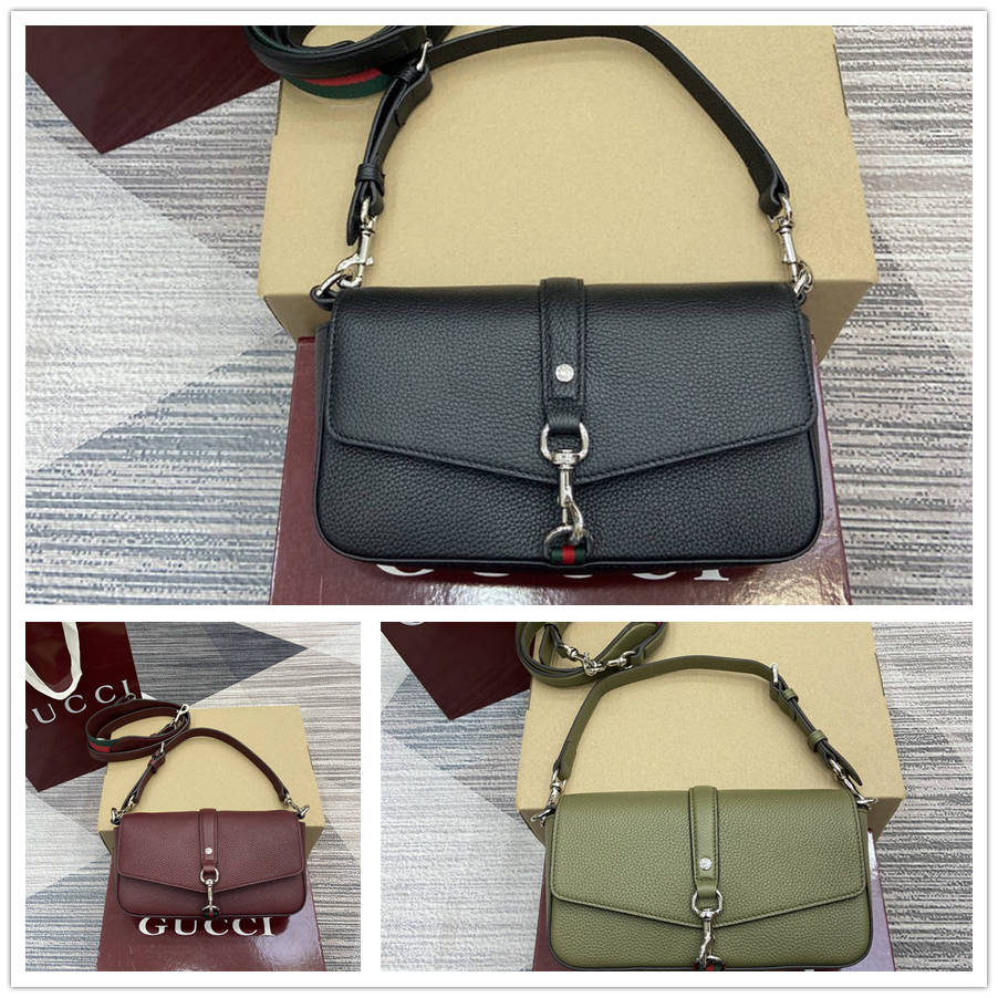 GGK【配全套专柜包装】2025春夏系列精彩呈献手袋新作。这款斜挎包采用翻盖开合,搭配弹簧钩扣配件,以焕新品牌标志性设计出彩,尽释品牌别出新意的美学风致。以古驰安可拉红粒面皮革匠心呈现,标志性弹簧钩扣开合与织带细节精巧相衬。