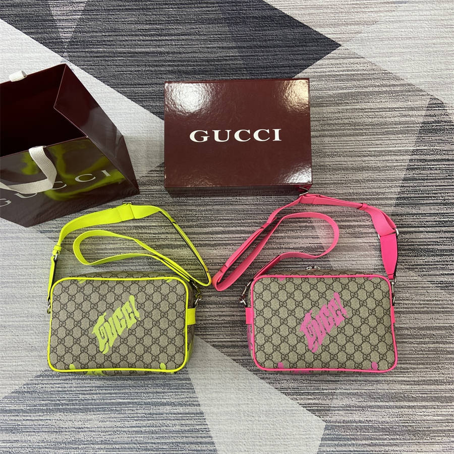 FCK【配全套专柜包装】2025早秋系列中,中国艺术家咖喱牛(Currynew)焕新演绎品牌标识,为男士成衣、皮具和配饰增色添彩。这款斜挎包以经典GG字母交织图案涂层织物匠心打造,巧妙融入Gucci印花和撞色皮革滚边,令整个设计愈发丰满。